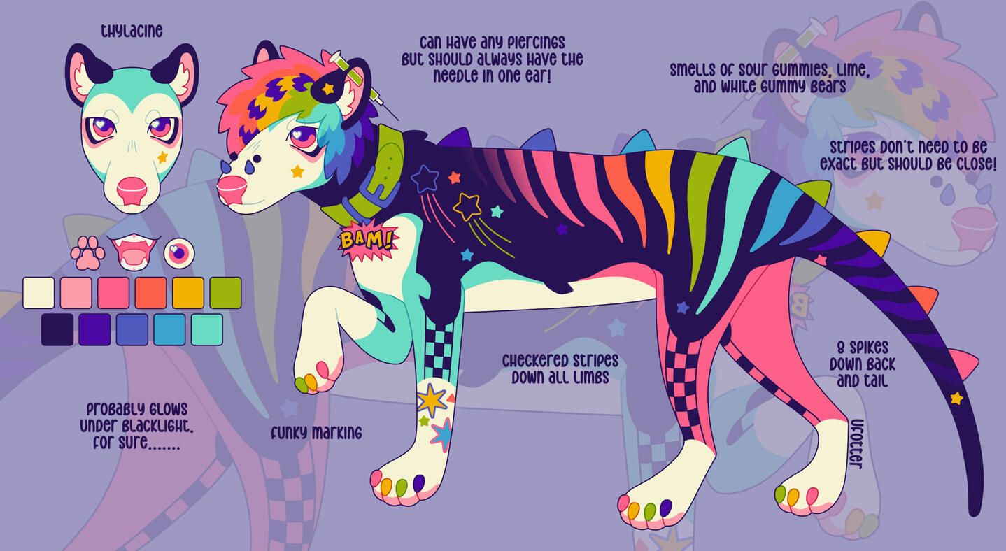 comes with 1 stylized anthro fullbody, 1 feral fullbody, 1 headshot, and a palette. comes with a concept custom version of the design before moving onto final!